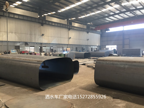 灑水車(chē)罐車(chē)內(nèi)部的波浪板制作需要用的機(jī)器不同一些,首先同樣是通過(guò)等離子切割機(jī)裁剪出弧形板塊,然后是通過(guò)折彎?rùn)C(jī)把弧形鋼板變成波浪的形狀。而波浪板中的人孔則是液壓機(jī)一次性沖壓成型的。至于波浪板、人孔的包邊和炮筒則需要用到剪板機(jī)。
