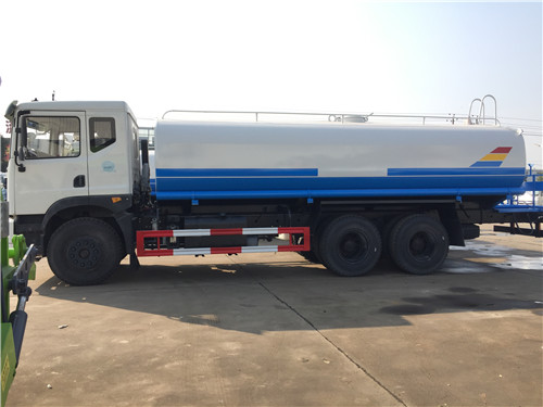 3、側(cè)噴、后灑――位于灑水車后工作平臺左右兩側(cè),側(cè)噴,即向側(cè)面噴灑的裝置,后灑,則是向后部噴灑的裝置,兩者水流形態(tài)都呈扇形,常用于道路壓塵降溫加濕,噴出的水薄而均勻,可避免噴灑后污水橫流的現(xiàn)象。